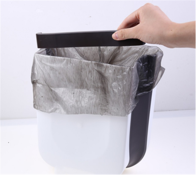 Basurero plegable está hecho de plástico de primera calidad y caucho elástico, no tóxico e insípido, resistente y duradero. Material grueso, alta capacidad de carga, fácil de manejar con la basura de la cocina.