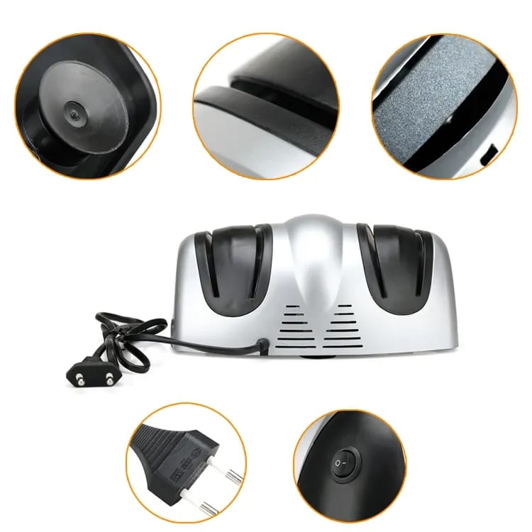 El afilador de cuchillos posee una carcasa que está hecha de material ABS, que tiene una alta dureza y durabilidad, afilado rápido pulsando el interruptor de encendido, es muy conveniente y fácil de usar, la piedra de carborundum en el afilado tiene alta resistencia a la temperatura, alta resistencia a la corrosión, alta dureza y alta resistencia abrasiva, la herramienta de afilado está construida dentro de la carcasa lo que reduce la posibilidad de lesiones accidentales, diseñado con soportes de silicona antideslizantes en la parte inferior para fijar la posición de la máquina, por lo que es más fácil de usar, ampliamente utilizado en diferentes cuchillos de cocina.